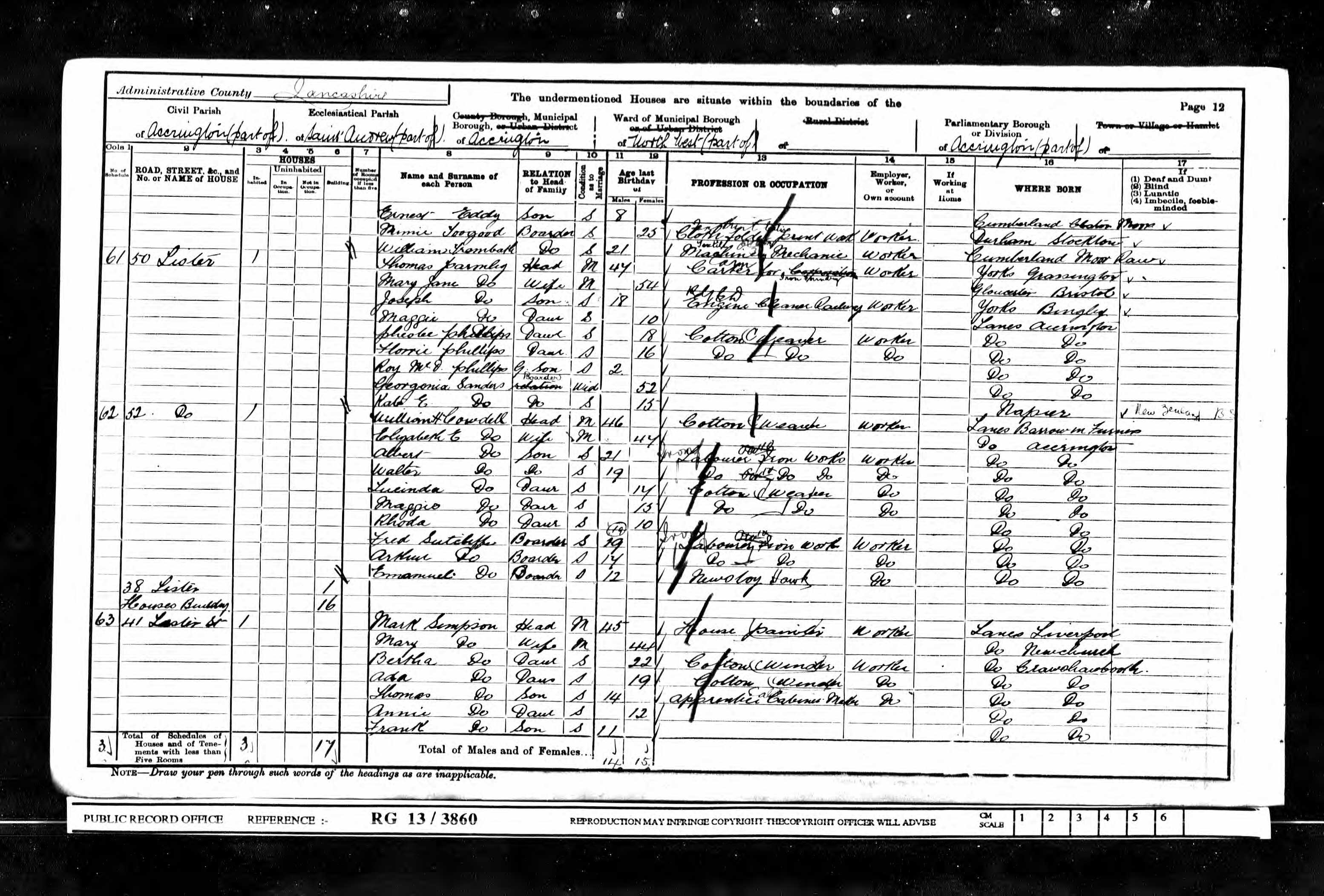 | Census 1901 | 1901 EDDY Wm (51) and fam - Accrington 32-60 48 Lister St b.jpg Format: image/jpeg Image dimensions: 3,108 × 2,104 pixels File size: 644 KB |