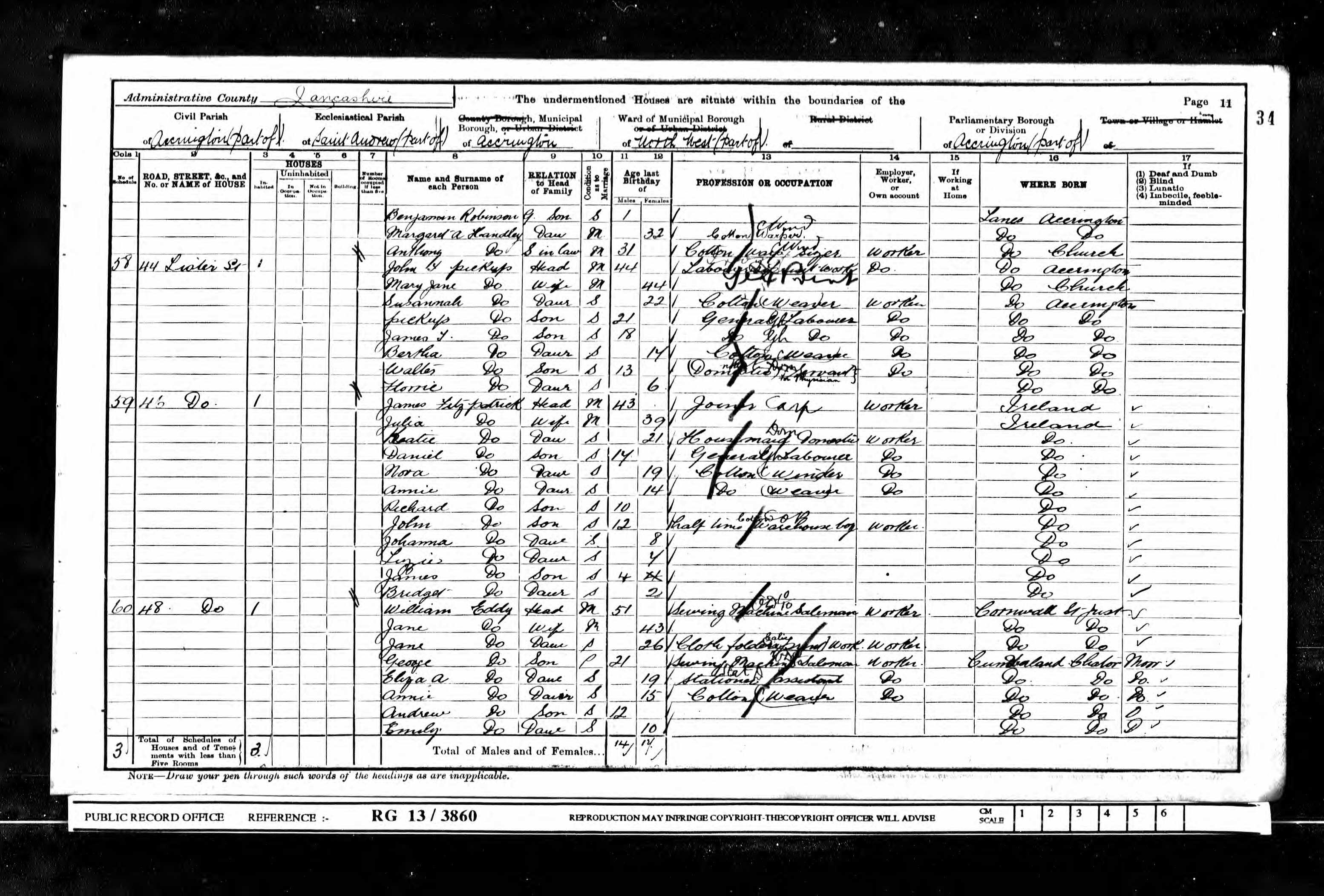 | Census 1901 | 1901 EDDY Wm (51) and fam - Accrington 32-60 48 Lister St a.jpg Format: image/jpeg Image dimensions: 3,108 × 2,104 pixels File size: 632 KB Highlighted image: yes |