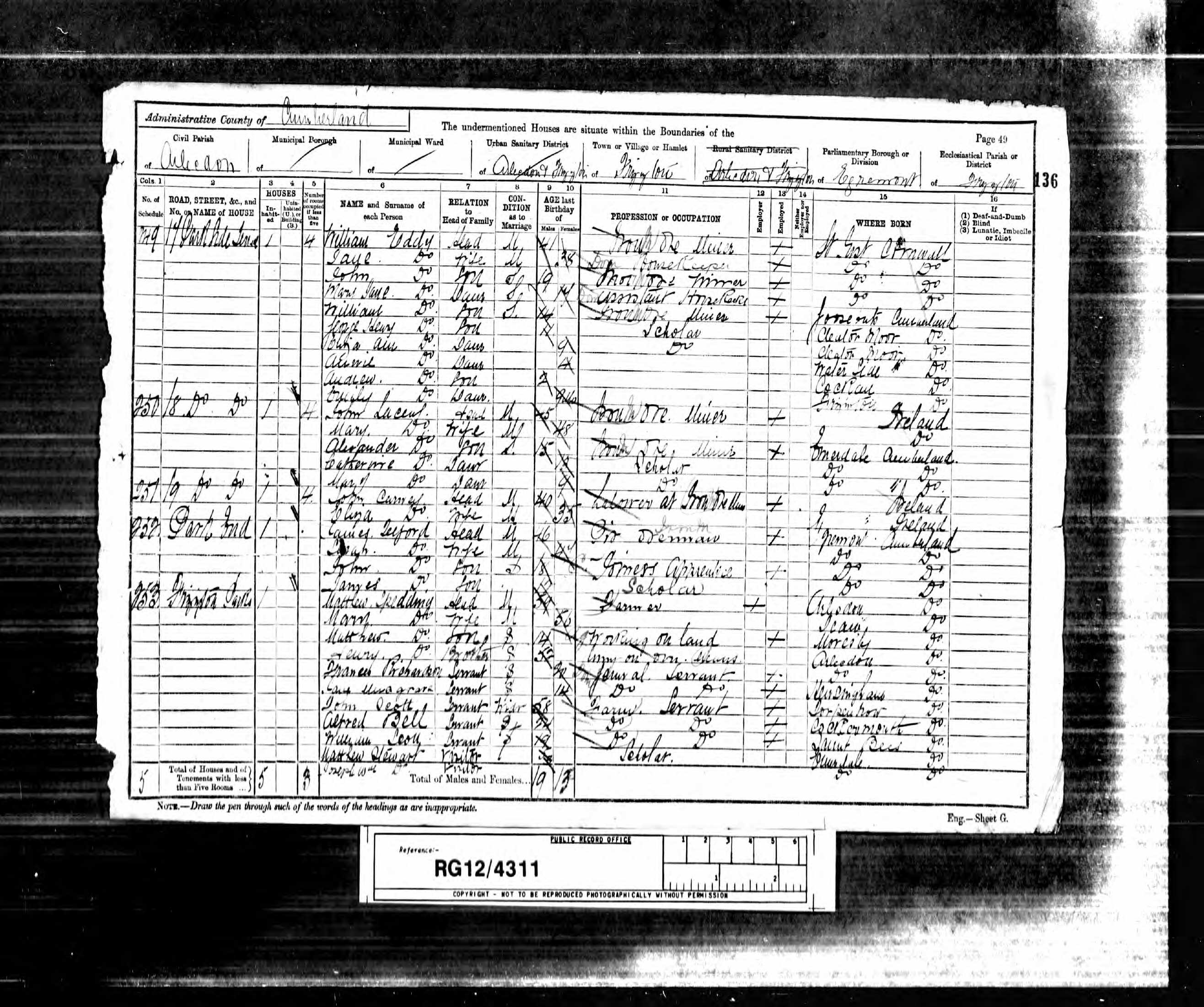 | Census 1871 | 1871 EDDY Wm (21) and sister - St Just 6-171 Boscaswell.jpg Format: image/jpeg Image dimensions: 1,461 × 919 pixels File size: 464 KB Highlighted image: yes |