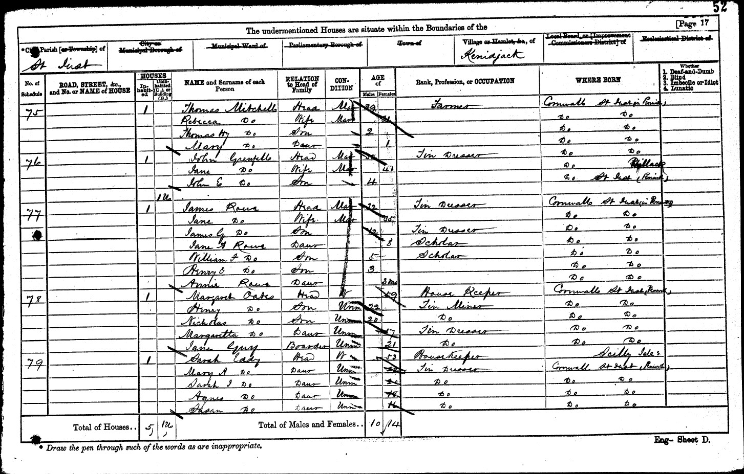 Christening: 26 June 1814 24 23 — St Just in Penwith, Cornwall, England Death: 20 December 1873 — St Just in Penwith, Cornwall, England |