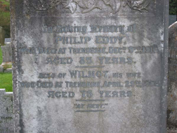 Birth: about 1861 — Paul, Cornwall, England Death: 8 April 1936 — Trendrine, Zennor, Cornwall, England |